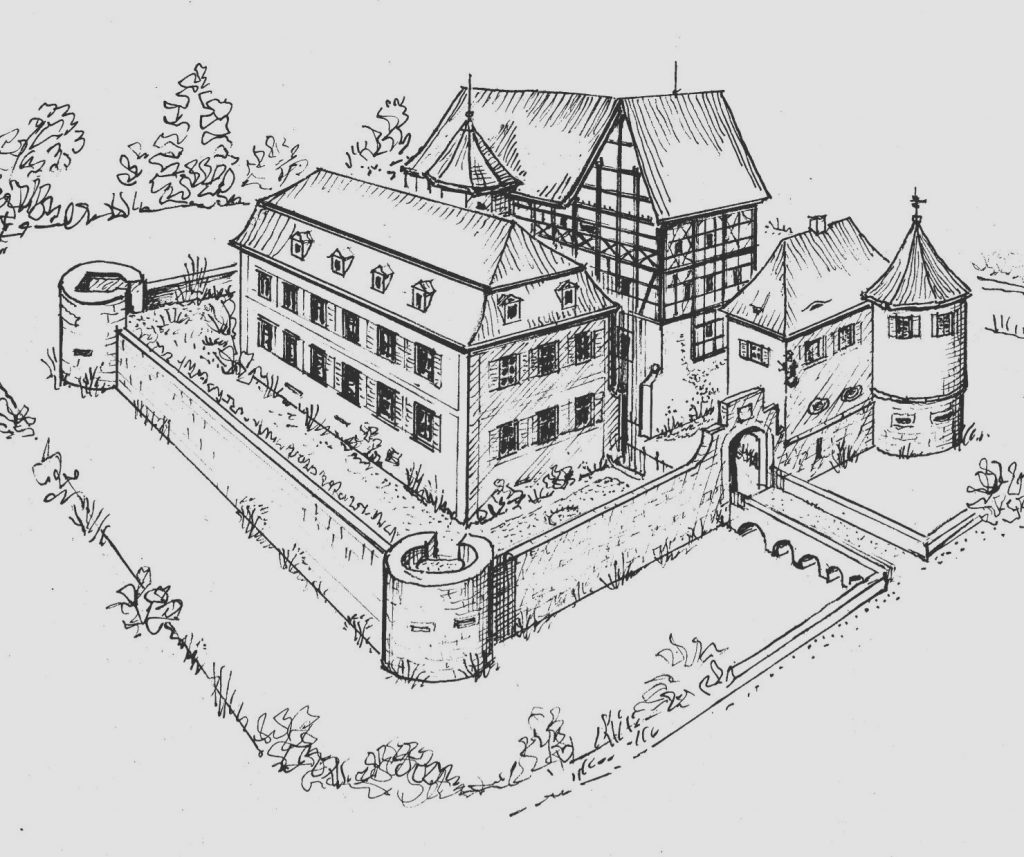 On Easter Monday in 1525, during the Peasants’ War, the castle was partially destroyed by fire, but it was rebuilt just two years later. Cornelius Freiherr von Habermann, Chancellor of the Court of Würzburg, Imperial Councillor, and Count Palatine of the Court, gave the west wing a Baroque makeover with a mansard roof. He removed the connecting structure between the two wings to allow more light into the inner courtyard. He also replaced the drawbridge with a stone bridge. The castle received only minimal repairs from previous generations. Major restoration work did not begin until the 1980s.