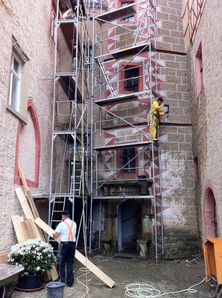 Das Schloss wurde unter den vergangenen Generationen nur notdürftig instand gesetzt. Erst in den 1980er Jahren begannen grössere Erhaltungsmaßnahmen. 1996 wurde uns der Denkmalpreis der Hypo-Kulturstiftung verliehen, der dem Erhalt des Schloss und des Gutes diente. Ferner steht das Schloss auf der Liste der >Haager Konvention zum Schutz von Kulturgut bei bewaffneten Konflikten<, die besondere Kulturgüter zu schützen sucht. 2008 konnte durch den Förderpreis des Bezirks Unterfranken wieder einige dringende Maßnahmen eingeleitet werden. Zuletzt wurde der durch bauliche Veränderungen im 17. und 18. Jahrhundert instabil gewordene Fachwerkflügel aufwendig statisch gesichert. Gefördert wurde das Projekt durch den Freistaat Bayern, vertrtreten durch da Landesamt für Denkmalpflege. Der Freundeskreis half ebenfalls und weitere Erhaltungsmassnahmen folgten.